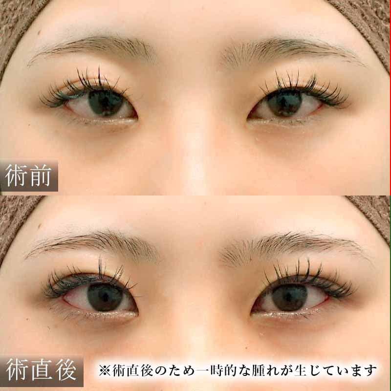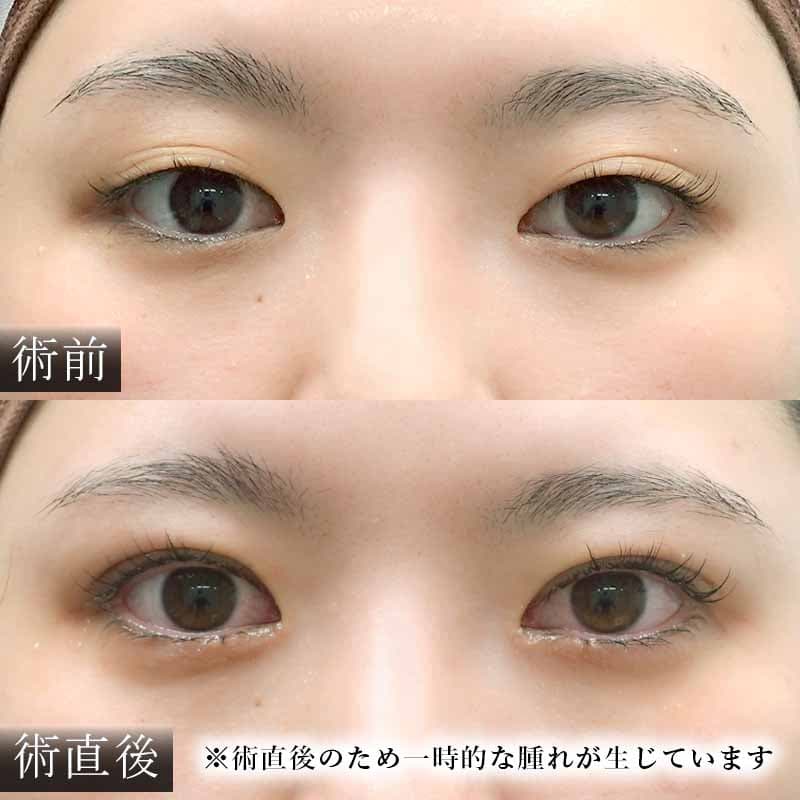 術直後のため腫れがありますが、まつ毛の生え際が見える末広二重になりました。
