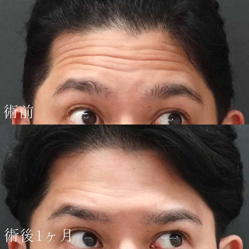 こちらは額のボトックス注射の施術をされた患者様の症例写真です。
