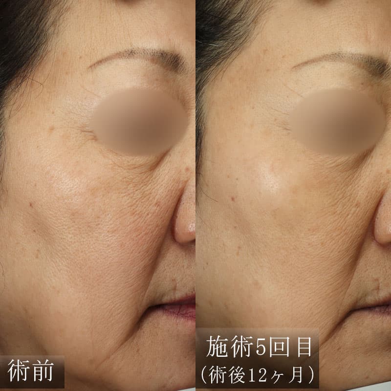 こちらは、ピコレーザーの中でも低出力なピコトーニングの症例です。繰り返し治療を行うことで肌質の改善が期待できます。