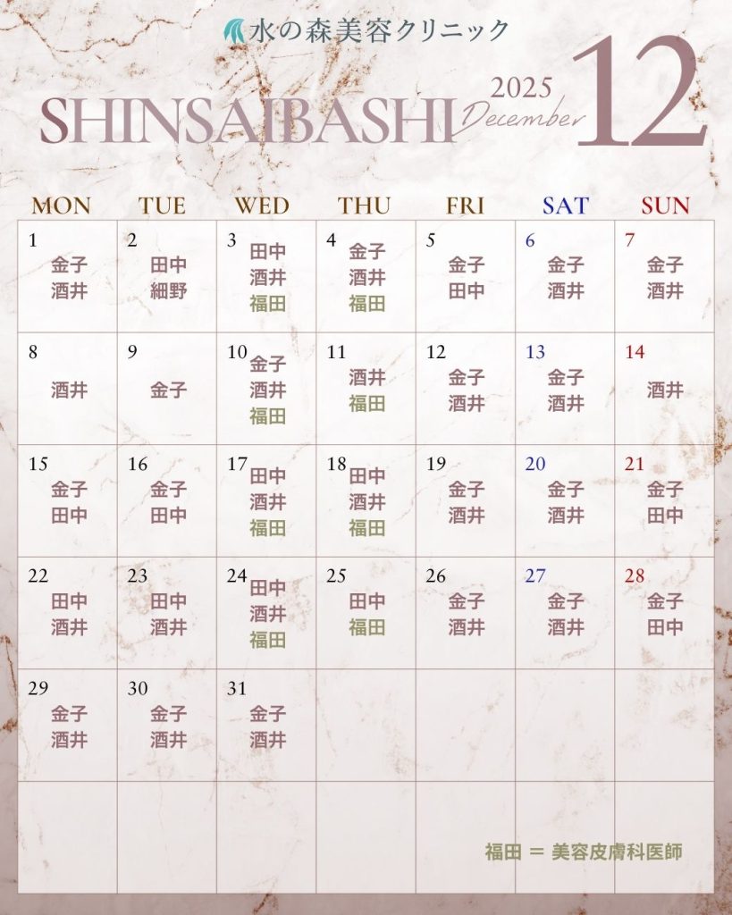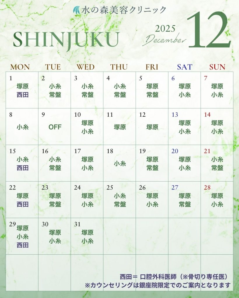 年末年始の休暇中に施術とダウンタイムを済ませたい方は、事前カウンセリング予約を早めにお取りください。