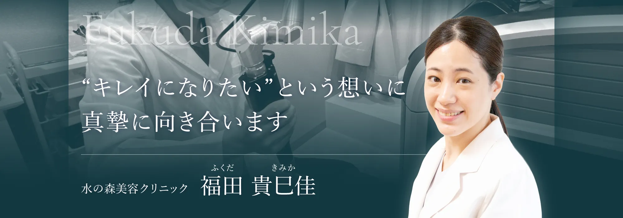 水の森美容皮膚科では、シミ・たるみ・毛穴・ニキビなど、様々なお悩みに対し、医師による施術や最新機器を用いた最適な治療をご提案いたします。ヒアルロン酸やボツリヌストキシン注射といった注入療法も、私の得意な施術ですので、ぜひ安心してお任せください。外科手術が適応となる場合も、スムーズにご案内が可能です。どうぞお気軽にご相談にいらしてください。