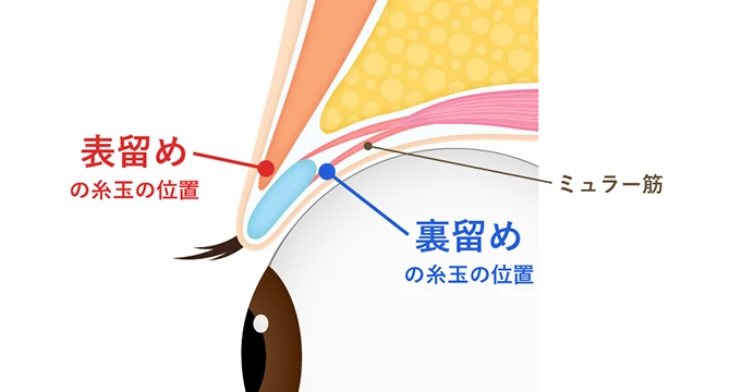 表留めは糸玉を眼球側に作らない