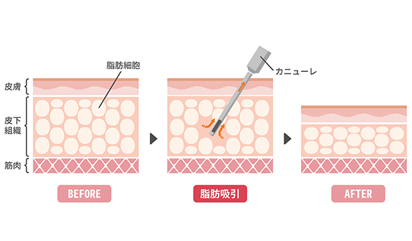リバウンドの原因となる脂肪細胞ごと吸引するのですっきりとした輪郭が持続します。