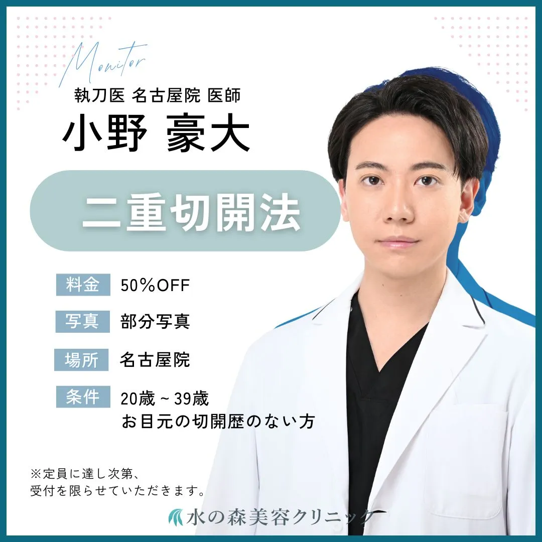 無料モニター制度を用いて研修を行い、指導医から執刀許可が出た医師が、症例写真を集めるために実施するモニターです。20~70%割引で実施されることが多く、不定期で募集しております。