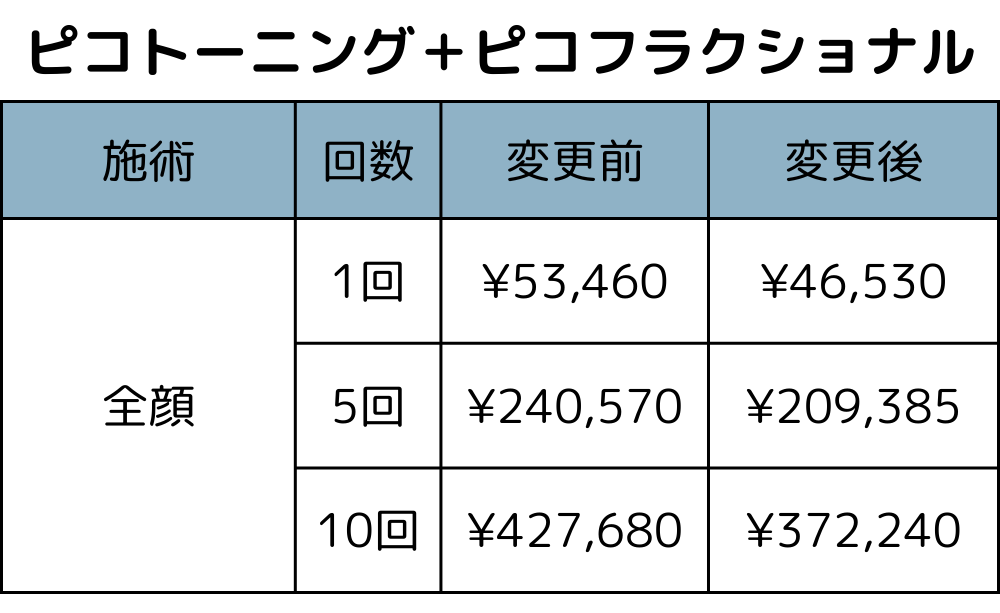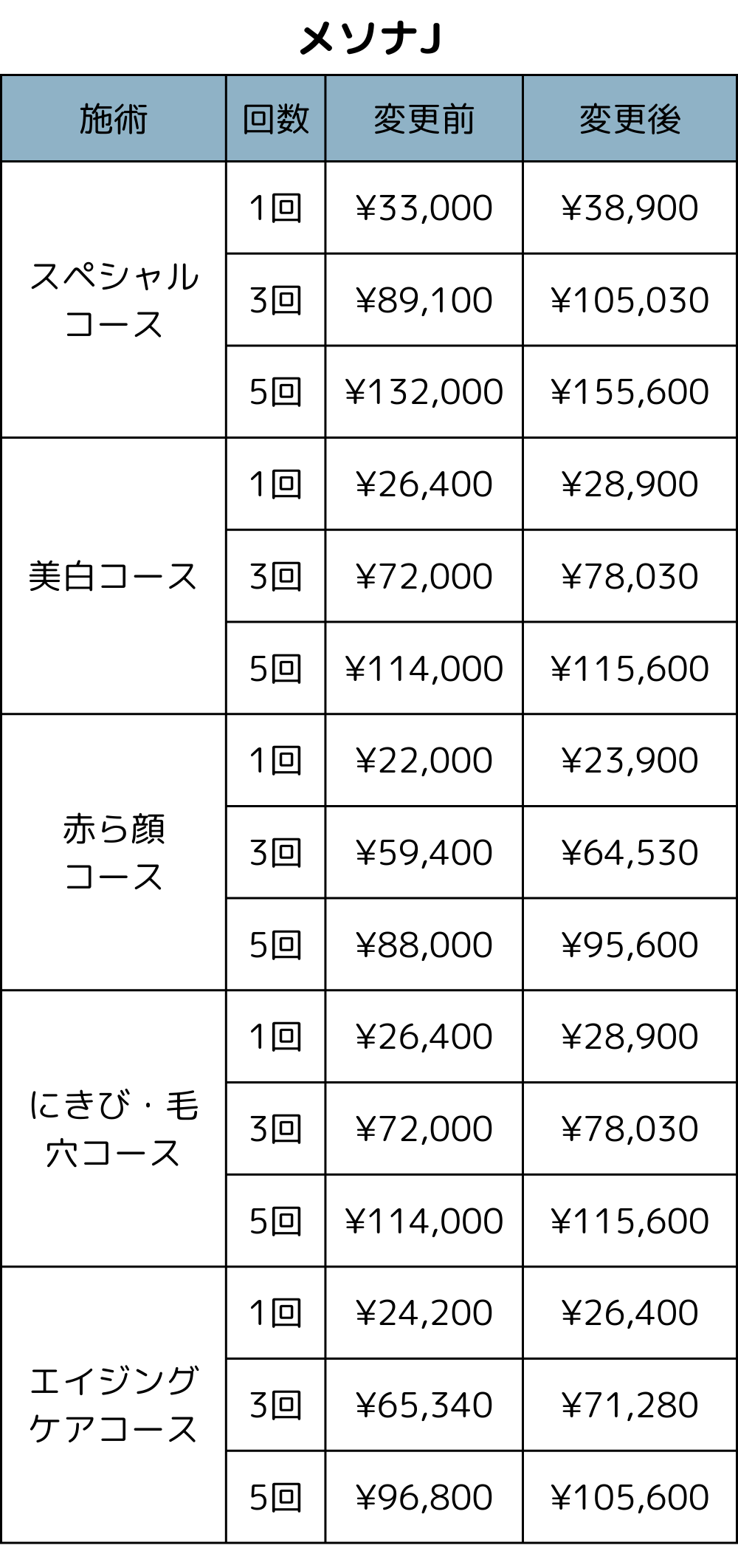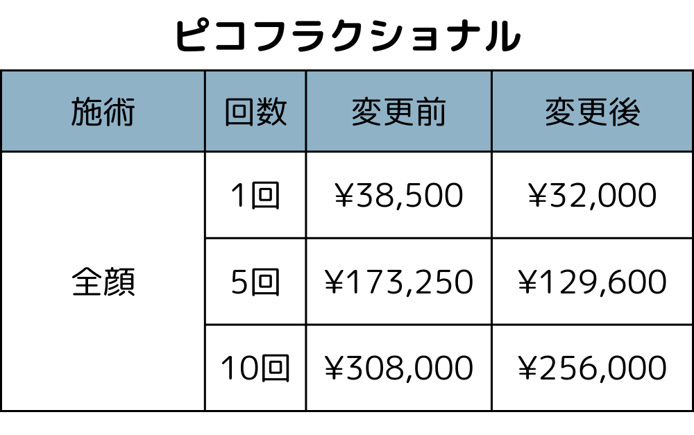 【お知らせ】メソナJ、ピコフラクショナルの価格改定について